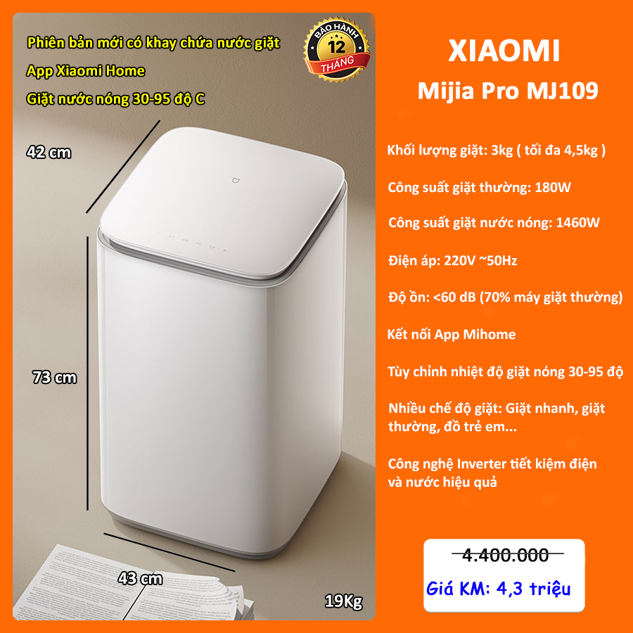 Ngoại hình tối giản, tinh khiết và hiện đại đã giúp Xiaomi Mijia Pro XQB30MJ109 3kg giành Giải thưởng Thiết kế Xuất sắc , khẳng định sự kết hợp hài hòa giữa thẩm mỹ và công năng.