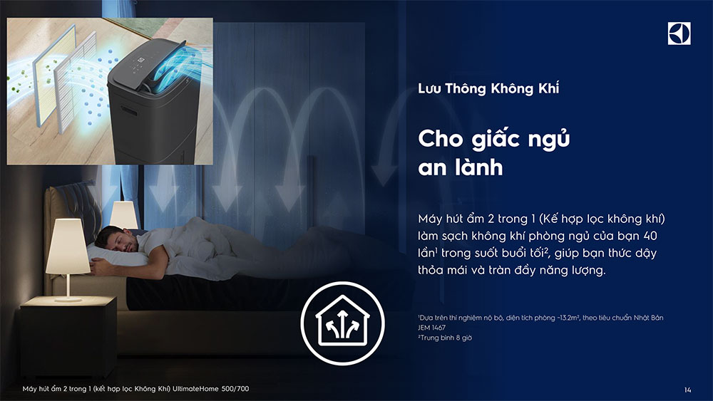 - Loại bỏ độ ẩm cao trong thời gian dài. Lọc sạch không khí cho giấc ngủ ngon lành