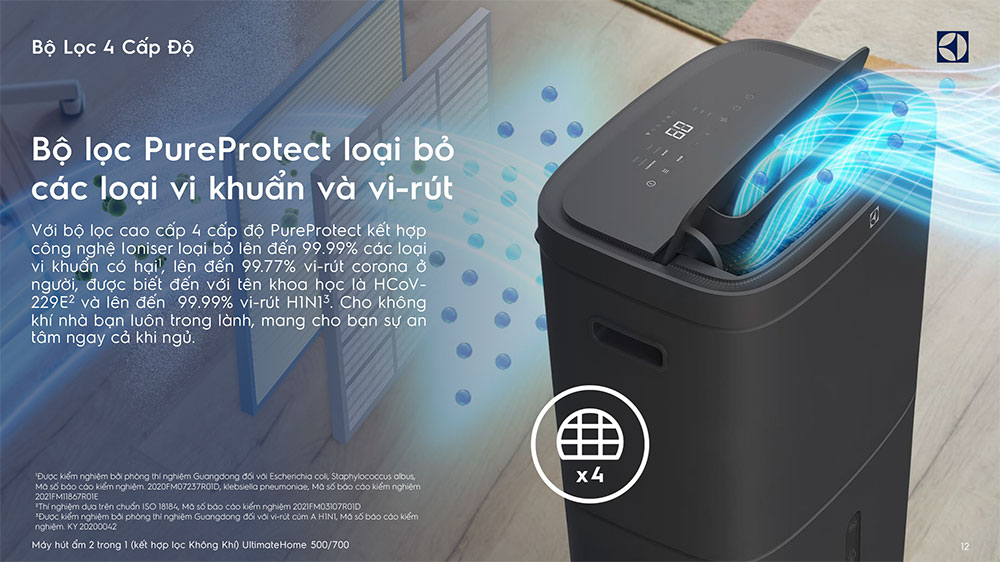 - Sở hữu bộ lọc PureProtect với 4 cấp độ lọc, loại bỏ các loại vi khuẩn và vi rút gây hại cho cơ thể