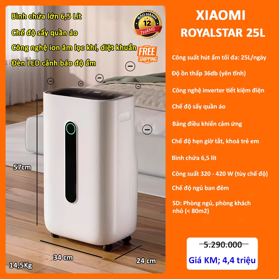 Máy hút ẩm Xiaomi RoyalStar 25L bảo hành 12 tháng