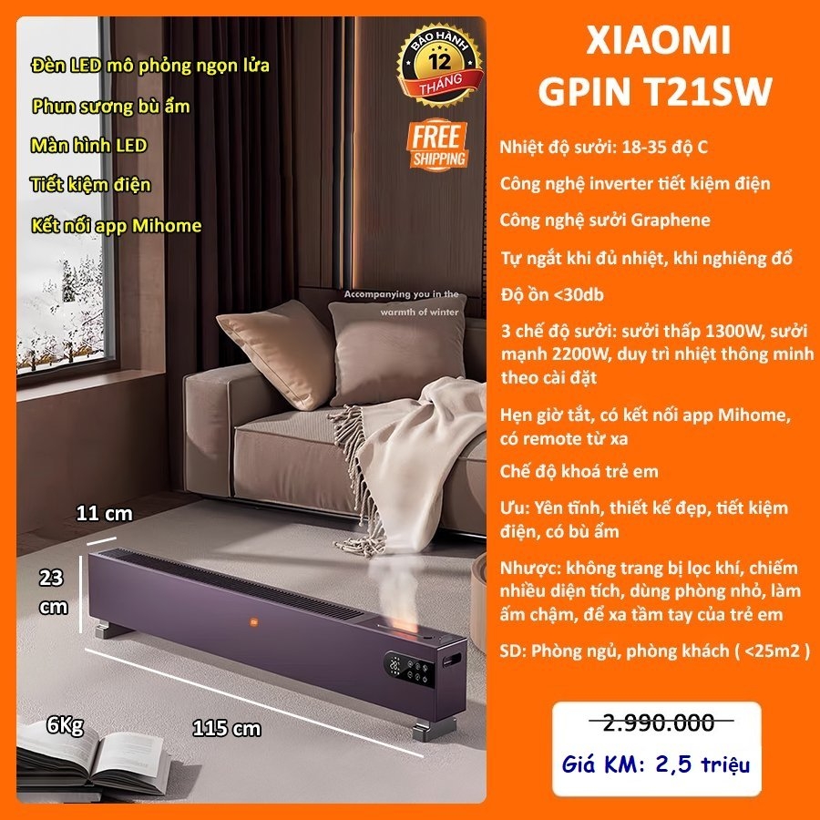 Máy sưởi nằm ngang Xiaomi Gpin T21SW