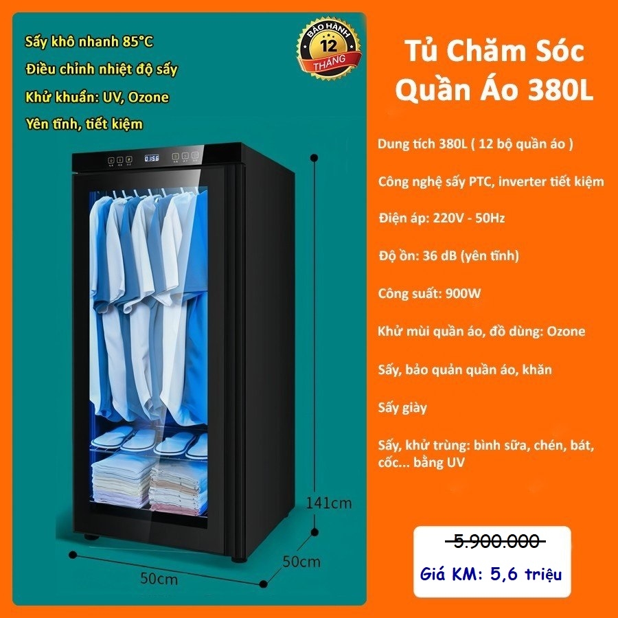 - Dung tích: 380L ( 12 bộ quần áo )